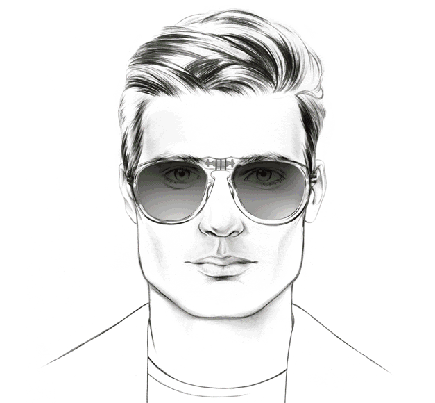 Greetings, sir. You appear to have a square face shape. Bold, distinctive features like a chiseled brow and a broad jawline give you a clear, masculine look. Curves look great with square faces, so consider round shapes – like oval frames and pilots. Semi-rimless styles also help balance a prominent jaw. Whether you decide to hit the gym or the boardwalk, a pair of shades can help make your dashing looks even stronger.